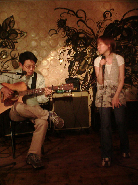 After the gig, a guy pointed out my mistakes and said, "Your fingers were a bit stiffer tonight than the last time, weren't they?." I lost my words. And I was sorry about that, but I felt so appreciated the words at the same time because then I could know some people are watching and listening to us with serious eyes and ears. Actually these days, I spared more time on writing songs, and our practice might be a bit behind... But we are so glad to be listened so closely. He asked us shakehands saying "I will be supporting you guys," as we said goodbye. Thank you Mr. Gen (sobriquet) for your backup! (A)